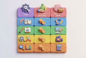 - タスクの洗い出し: 具体的にどのようなタスクで稼ぐのかを洗い出します。記事作成、プログラミング、データ分析、AI美女モデルのプロンプト作成など、ご自身のスキルに合ったタスクを選びましょう。【速報】AI美女モデルが副業市場を席巻!著作権問題と新たな収益源の可能性も潜在的な収益源のアイデアとしてご参照ください。